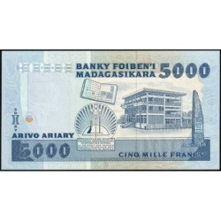 Revers : Bâtiment de la Bibliothèque Nationale à Antananarivo, stèle commémorative sur la place de l'Indépendance à Antananarivo, emblème du pays