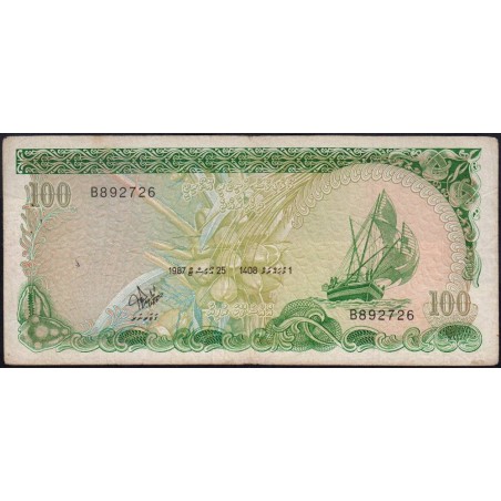 Maldives - Pick 14b - 100 ruffiyaa - Série B - 25/08/1987 - Etat : TB+