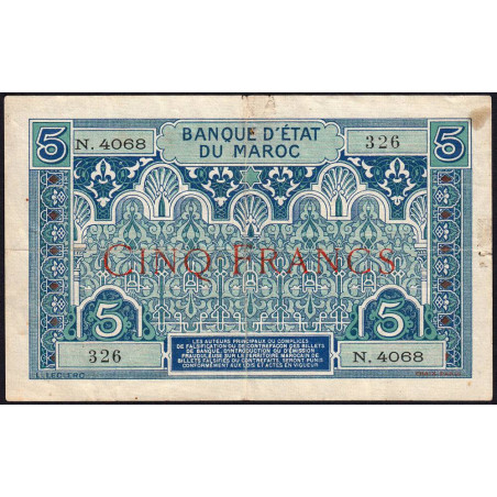 Maroc - Pick 9_5 - 5 francs - Série N.4068 - 1941 - Etat : TB+