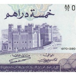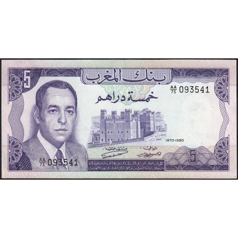 Avers : Portrait de Hassan II (1929-1999) roi du Maroc de 1961 à 1999, cité fortifiée de Aït-ben-Haddou près de Ouarzazate