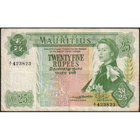 • Maurice (île) - Pick 32a - 25 rupees - Série A/1 - 1967 - Etat : TB+