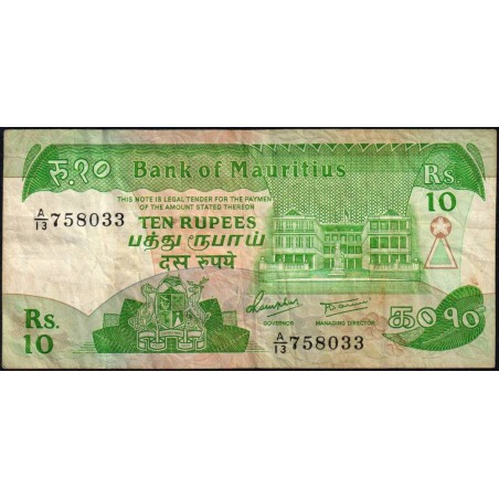 Maurice (île) - Pick 35a - 10 rupees - Série A/13 - 1985 - Etat : TB