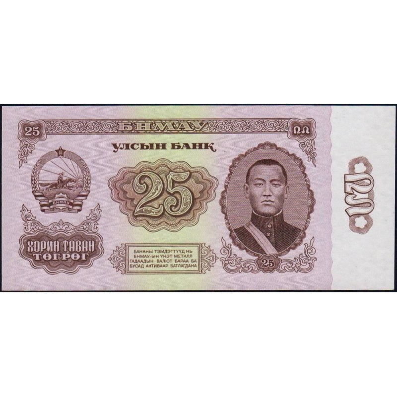 • Mongolie - Pick 39 - 25 tugrik - Série AC - 1966 - Etat : pr.NEUF
