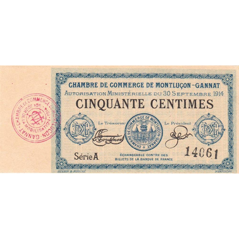 • Montluçon-Gannat - Pirot 84-1 - 50 centimes - Série A - 1914 - Etat : NEUF