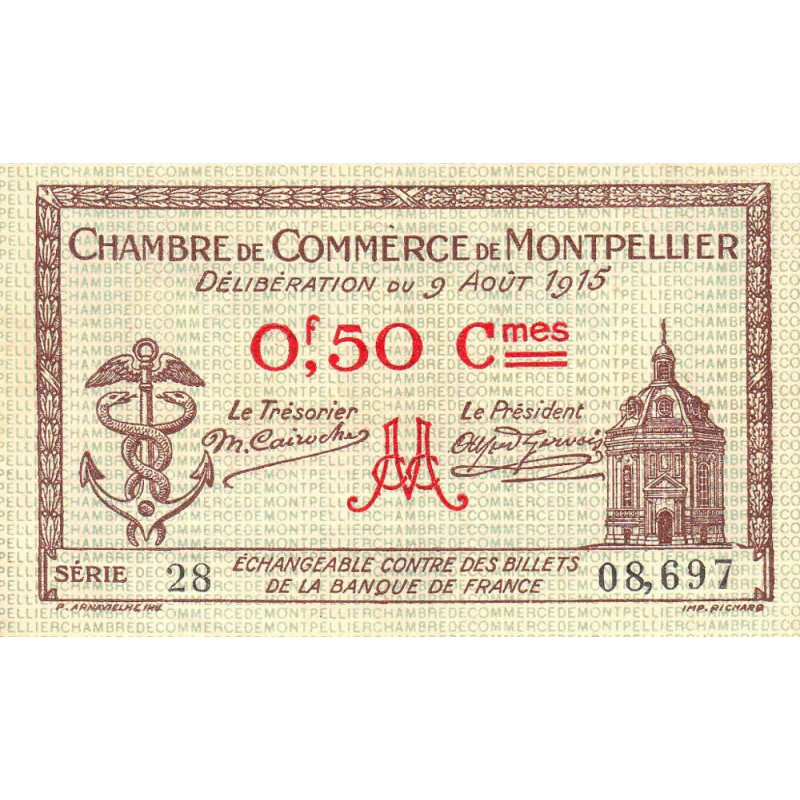 • Montpellier - Pirot 85-1 - 50 centimes - Série 28 - 09/08/1915 - Etat : SUP