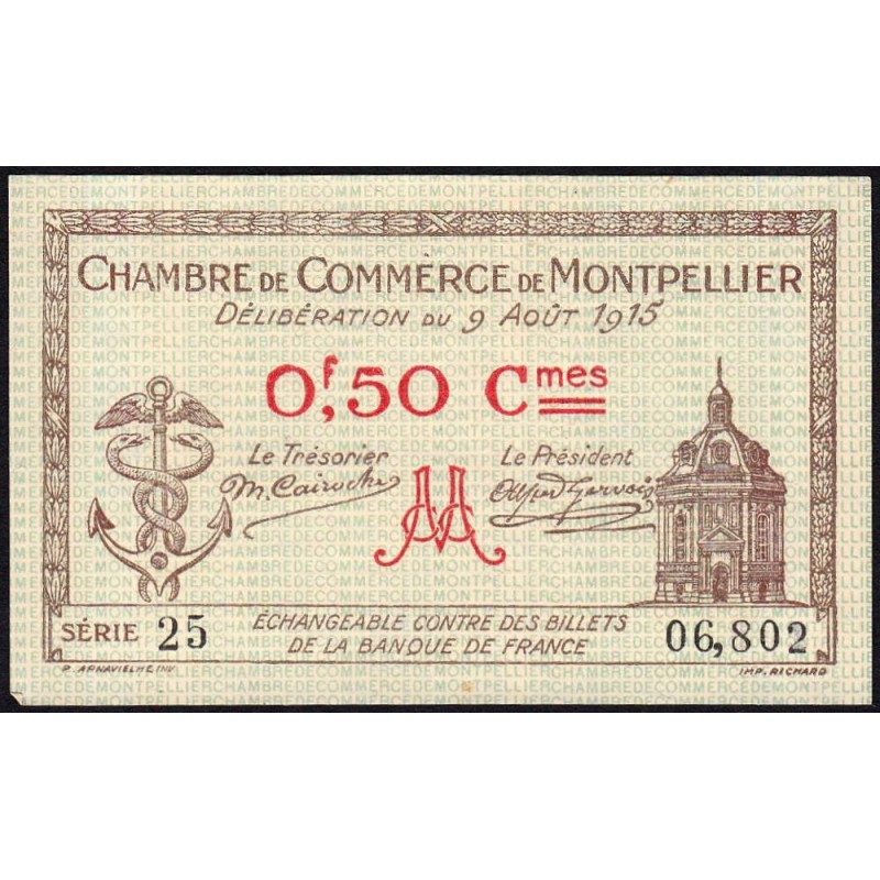 • Montpellier - Pirot 85-1 - 50 centimes - Série 25 - 09/08/1915 - Etat : SPL+