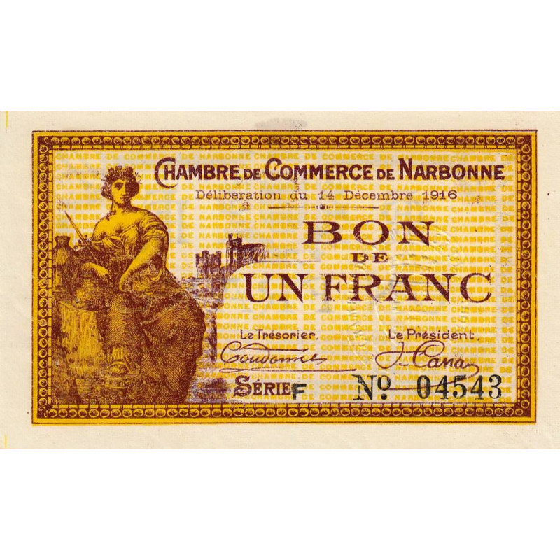 Narbonne - Pirot 89-11 - 1 franc - Série F - 14/12/1916 - Etat : SPL