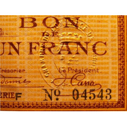 • Narbonne - Pirot 89-11 - 1 franc - Série F - 14/12/1916 - Etat : SPL