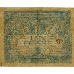• Nîmes - Pirot 92-11 variété - 1 franc - Série 101 - 04/06/1915  - Emission 1915-1920 - Etat : TTB+ à SUP