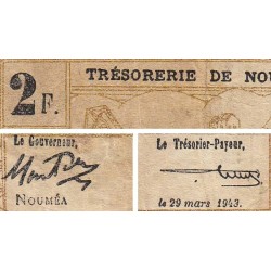• Nouvelle-Calédonie - Nouméa - Pick 56b - 2 francs - 29/03/1943 - Etat : TB-