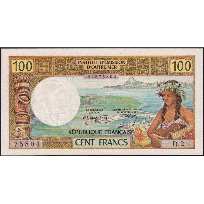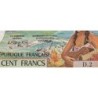 Avers : Jeune femme tahitienne avec couronne de fleurs jouant de la guitare, vue aérienne de l'aéroport et navires au port de Papeete, mont Tohiea point culminant de l'île de Moorea, tiki polynésien en bois sculpté