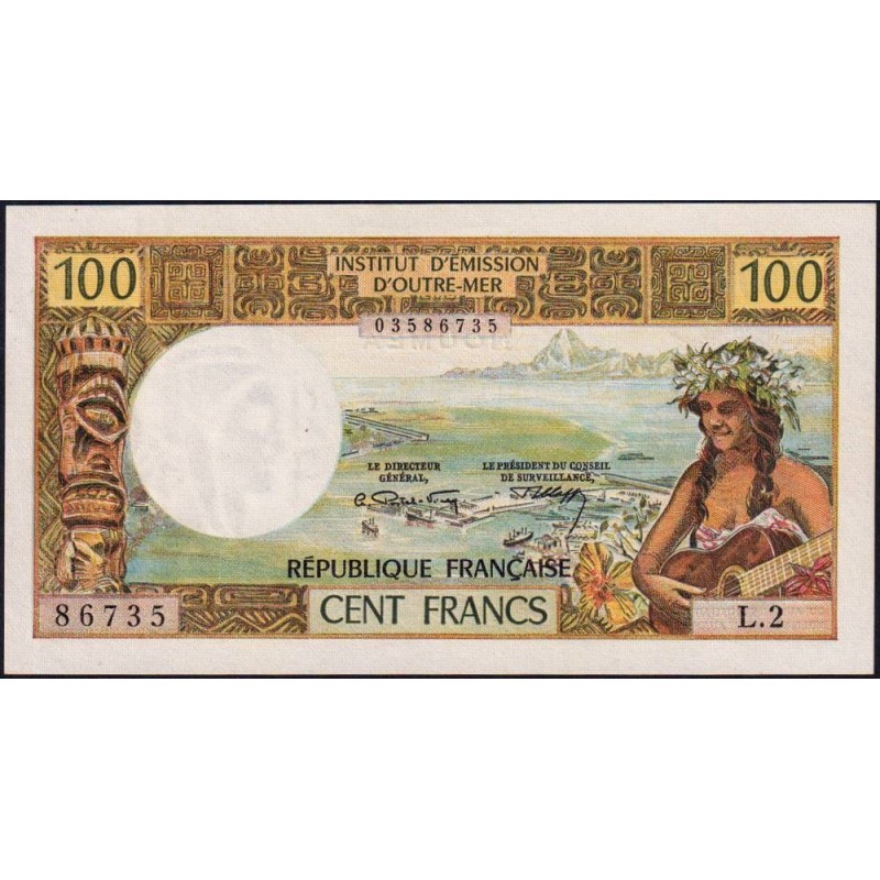 Revers : Jeune femme néo-calédonnienne entre des fleurs, vue aérienne de la ville portuaire de Nouméa, poteau traditionnel en bois sculpté