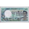 Avers : Pêcheur polynésien avec son trident sur l'épaule, vue d'un paysage côtier de l'île de Ua Pau situé dans l'archipel des Marquises avec pirogues à balancier, poissons tropicaux