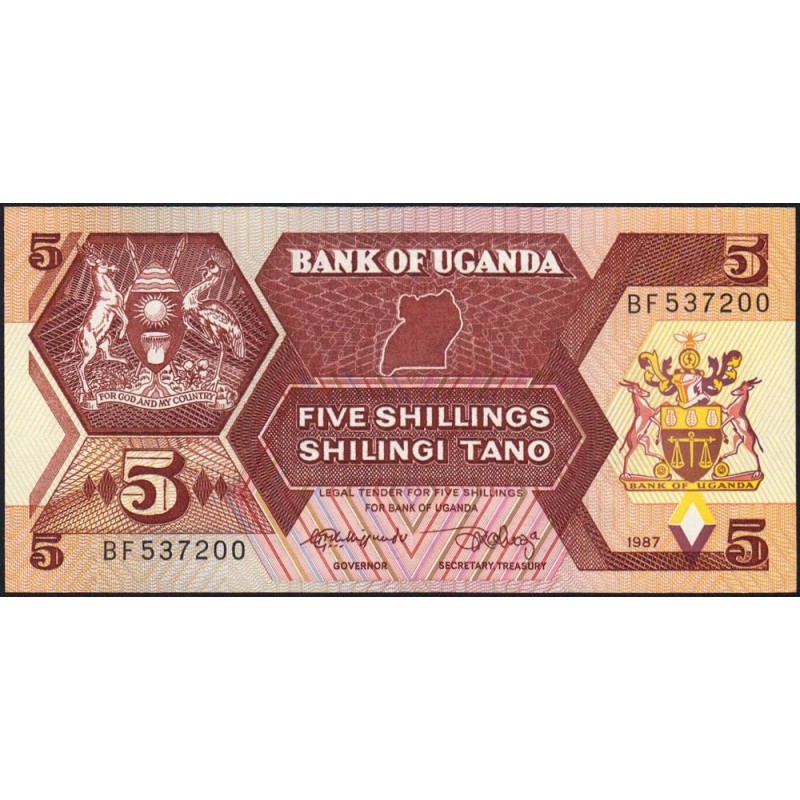 Ouganda - Pick 27 - 5 shillings - Série BF - 1987 - Etat : NEUF