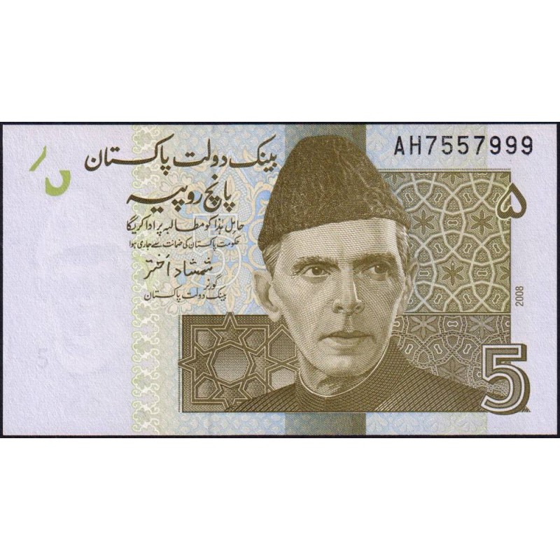 Pakistan - Pick 53a_2 - 5 rupees - Série AH - 2008 - Etat : NEUF