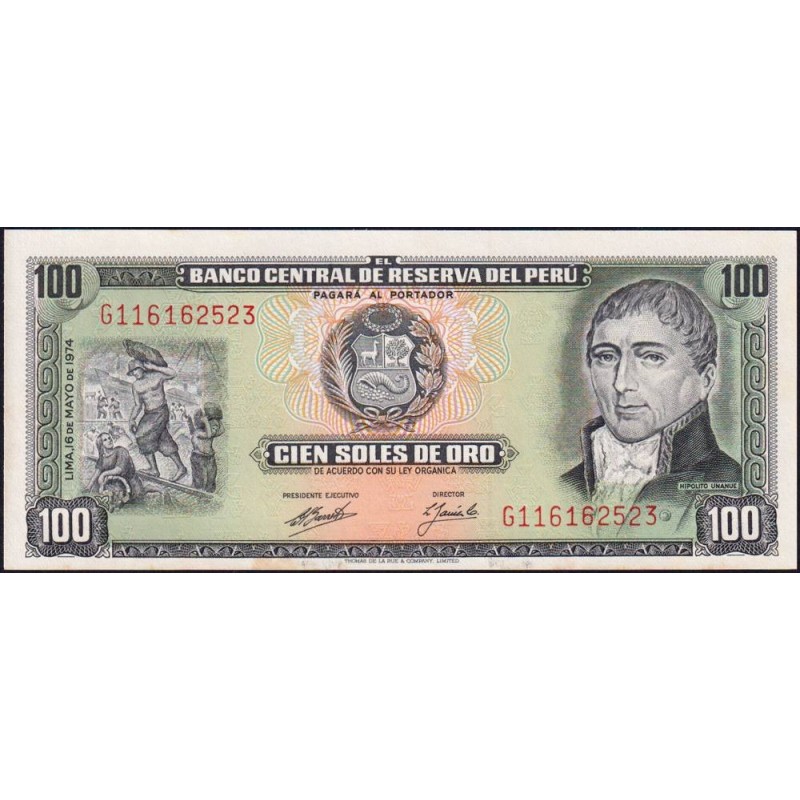 Avers : A gauche déchargement d'un navire à quai, au centre emblème du pays, à droite portrait du docteur José Hipólito Unanúe (1755-1833) président du Conseil de gouvernement du Pérou de 1825 à 1826