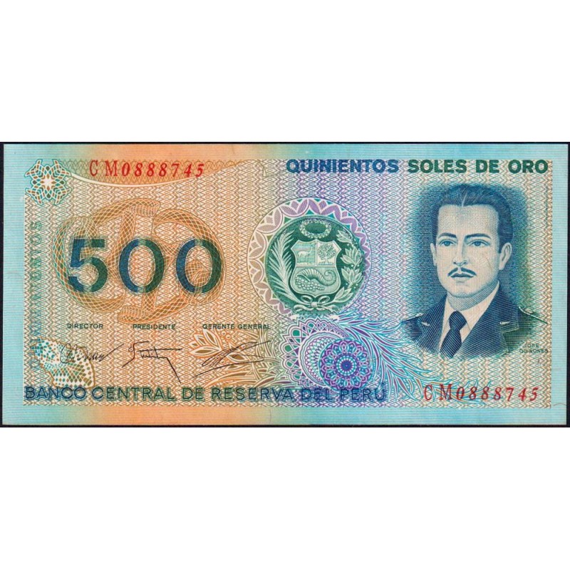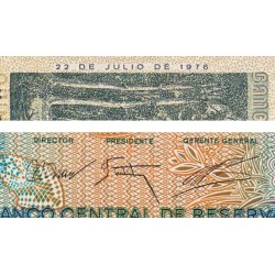 Avers : Au centre emblème du pays, à droite portrait de l'aviateur de l'armée de l'air péruvienne José Abelardo Quiñones Gonzales (1914-1941) héros de la guerre péruano-équatorienne de 1941
