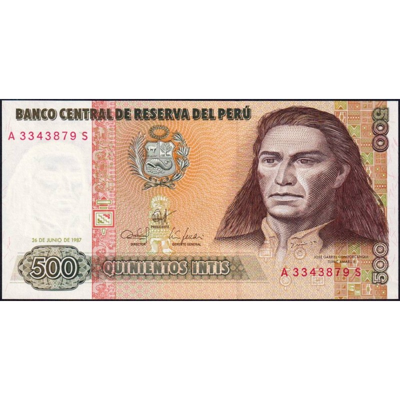 Avers : Au centre emblème du pays, à droite portrait du cacique indien José Gabriel Condorcanqui Noguera appelé José Gabriel Túpac Amaru II (1738-1781)