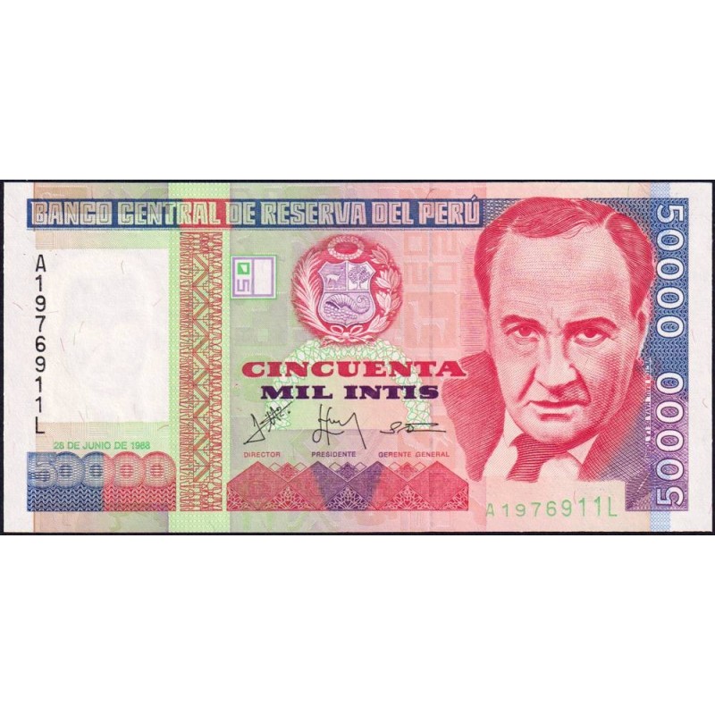 Avers : Au centre emblème du pays, à droite portrait de l'homme politique Víctor Raúl Haya de la Torre (1895-1979)