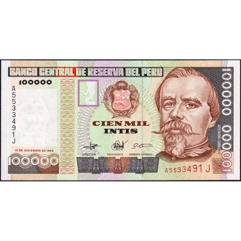 Avers : Au centre emblème du pays, à droite portrait de Francisco Bolognesi Cervantes (1816-1880) héros de la Guerre du Pacifique