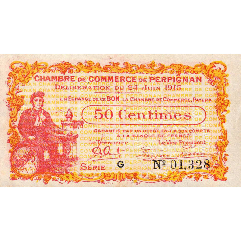 • Perpignan - Pirot 100-5 - 50 centimes - Série G - 24/06/1915 - Etat : SUP