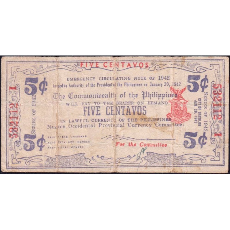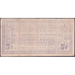 Avers : Valeur en chiffres et en lettres dans les 4 coins à l'intérieur du cadre, emblème du Commonwealth des Philippines en rouge à droite