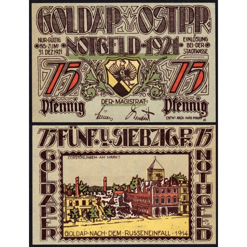 Pologne - Notgeld - Goldap - 75 pfennig - 1922 - Etat : NEUF