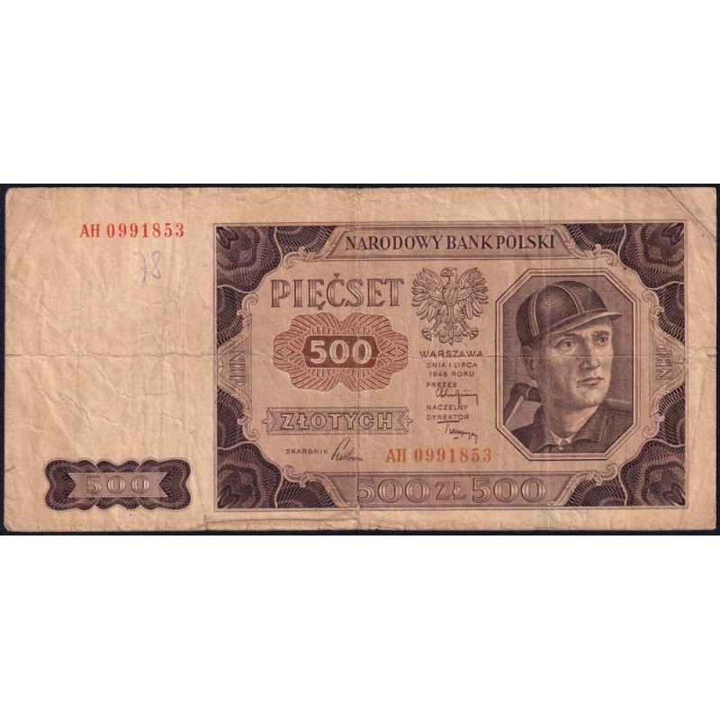 Pologne - Pick 140_2a - 500 zlotych - Série AH - 01/07/1948 - Etat : B+