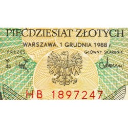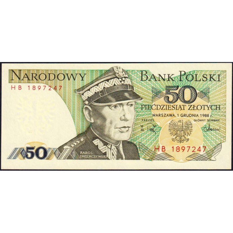 • Pologne - Pick 142c_2 - 50 zlotych - Série HB - 01/12/1988 - Etat : NEUF