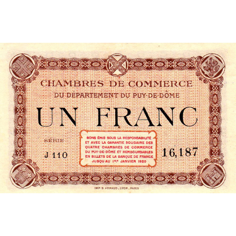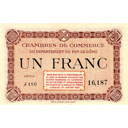 • Puy-de-Dôme - Pirot 103-6 - 1 franc - Série J 110 - Sans date - Etat : NEUF