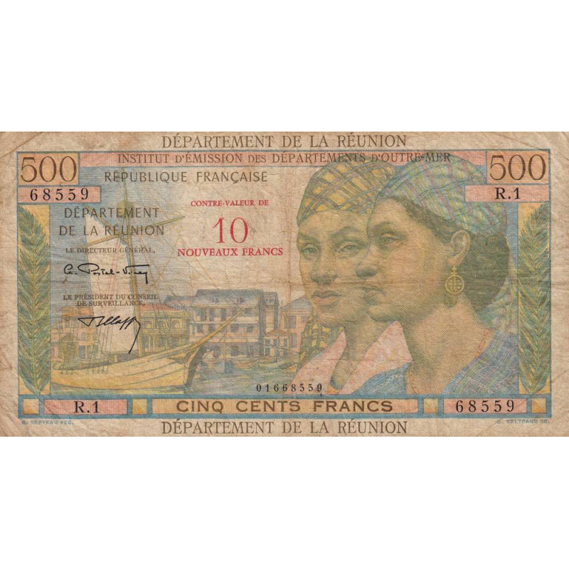 Avers : Deux femmes en habits traditionnels, bateau au port de Pointe-à-Pitre