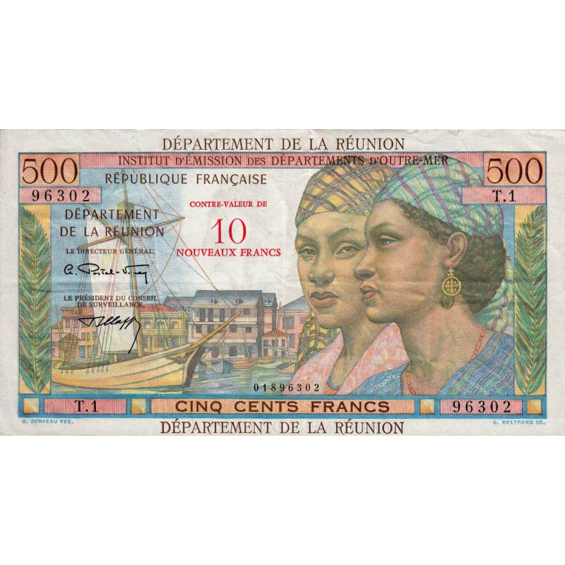 Avers : Deux femmes en habits traditionnels, bateau au port de Pointe-à-Pitre