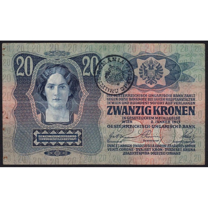 Lors de la dislocation de l'Autriche-Hongrie après la fin de la première guerre mondiale, l'assemblée de Bucovine où les Moldaves étaient majoritaires vota le rattachement à la Roumanie qui sera entériné le 10 septembre 1919 par le Traité de Saint-Germain-en-Laye. Les billets austro-hongrois utilisés en Bucovine furent estampillés uniquement sur la face autrichienne avec un cachet marqué * ROMANIA * TIMBRU SPECIAL afin de pouvoir continuer à être utilisés jusqu'à leur remplacement. A partir du 1 septembre 1920 et jusqu'à la fin 1921 les billets estampillés devinrent échangeables contre des billets en lei de la Banque Nationale de Roumanie au taux de 2 kronen pour 1 leu.