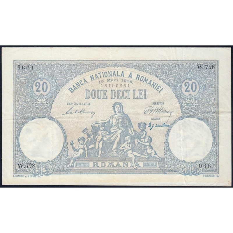Avers : Figure allégorique de la Roumanie représentée par une femme assise avec six chérubins tenant une torche, un caducée, une branche d'olivier, une corne d'abondance, un panier de fruits, des tiges de blé