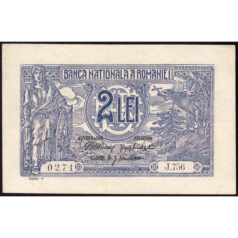 Revers : A gauche soldat tenant un fusil avec baïonnette, à droite soldat au garde-à-vous sonnant du clairon, en bas armoiries couronnées de la Roumanie