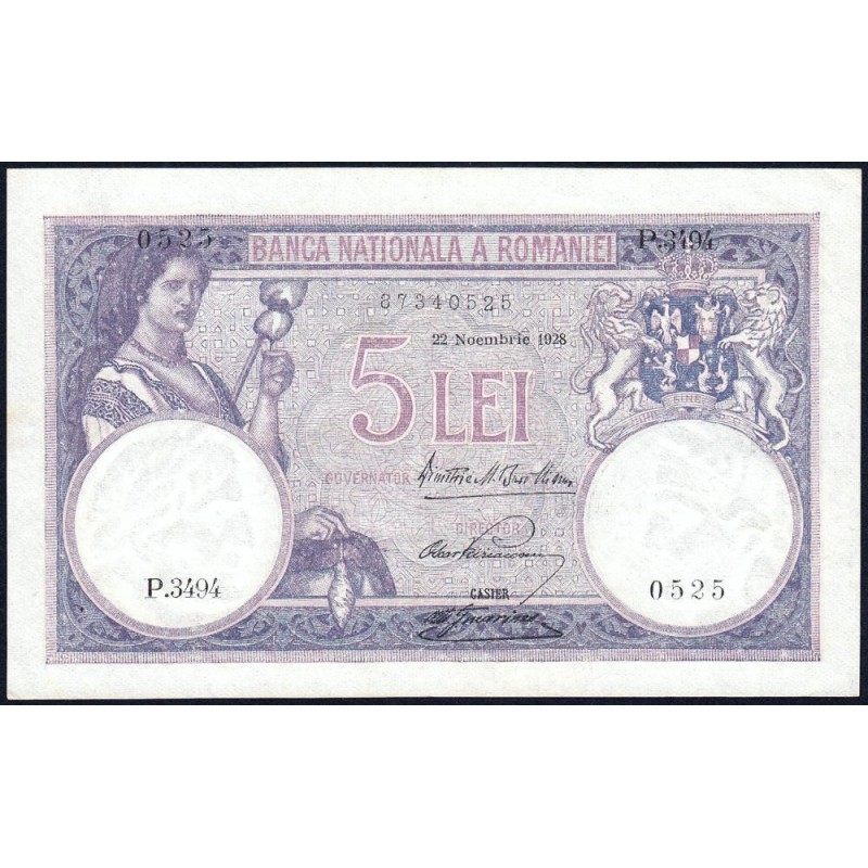 Avers : A gauche femme en habit traditionnel filant la laine avec sous son bras une quenouille, tirant le fil de la main gauche et faisant tourner le fuseau de la main droite, à droite armoiries couronnées de la Roumanie