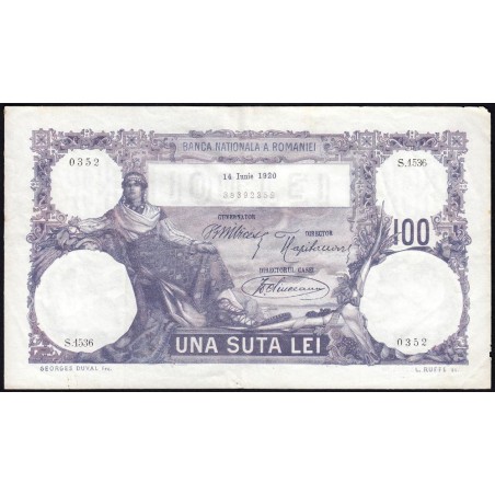 Roumanie - Pick 21i_3 - 100 lei - Série S.1536 - 14/06/1920 - Etat : TTB+