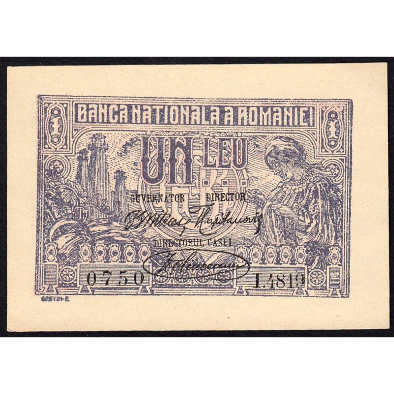Revers : Médaillons circulaires surmontés du monogramme BNR, à l'intérieur à gauche la tête de l'empereur Trajan, à droite la tête du roi Décébale, au centre la louve du Capitole allaitant les jumeaux Romulus et Rémus, en haut armoiries couronnées de la Roumanie