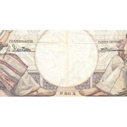 Revers : A gauche deux paysannes pieds nus portant chacune une houe sur l'épaule, à droite derricks en bois pour l'extraction de pétrole, au cente haut armoiries du royaume de Roumanie