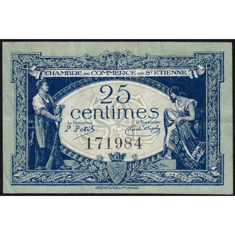 Saint-Etienne - Pirot 114-5 - 25 centimes - Sans Série - 12/01/1921 - Etat : TTB