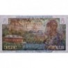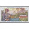 Revers : Femme des Antilles françaises en habits traditionnels accoudée sur une corbeille de fruits, maison créole, palmiers, montagne