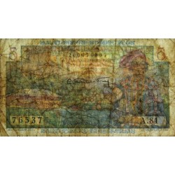 Revers : Femme des Antilles françaises en habits traditionnels accoudée sur une corbeille de fruits, maison créole, palmiers, montagne