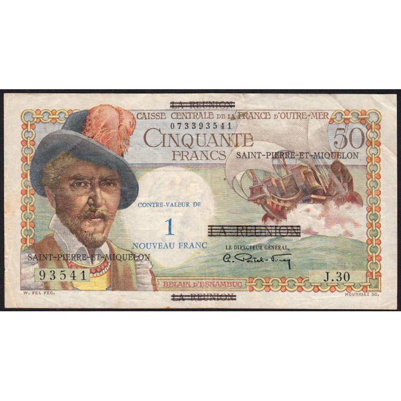 Avers : Portrait du marin, flibustier, aventurier et colon français Pierre Belain d'Esnambuc (1585-1636), caravelle sur la mer