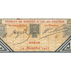 Sénégal - Dakar - Pick 5Bc_1 - 5 francs - Série L,1448 - 14/12/1922 - Etat : TB