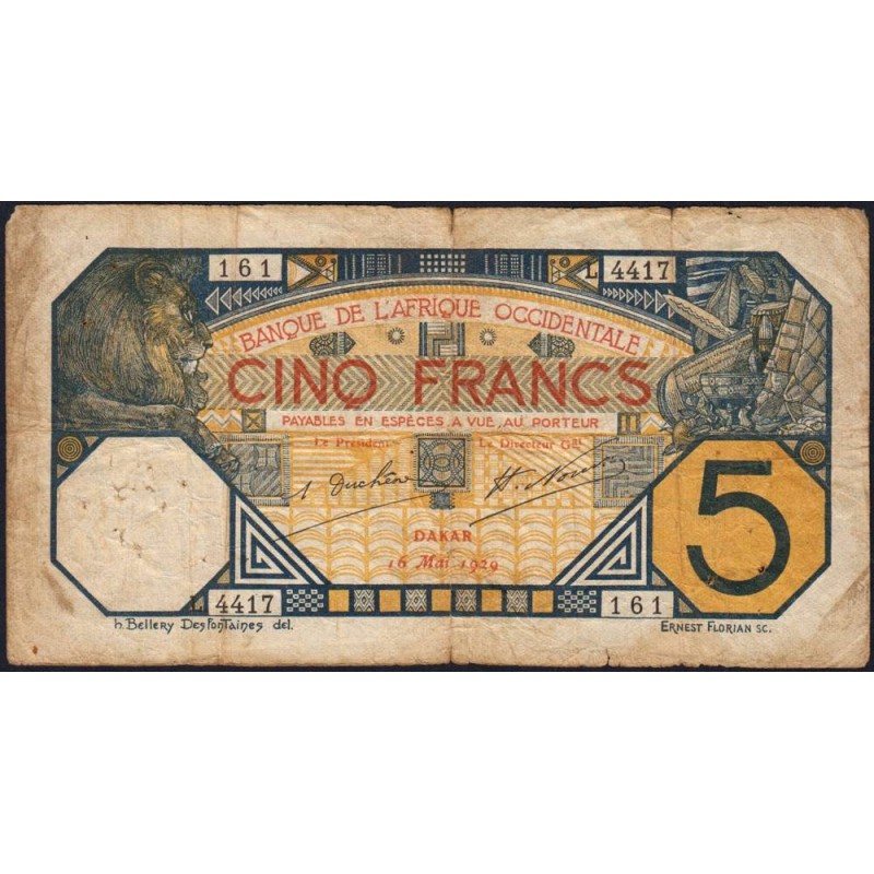 Sénégal - Dakar - Pick 5Bd - 5 francs - Série L.4417 - 16/05/1929 - Etat : TB-