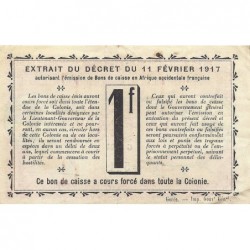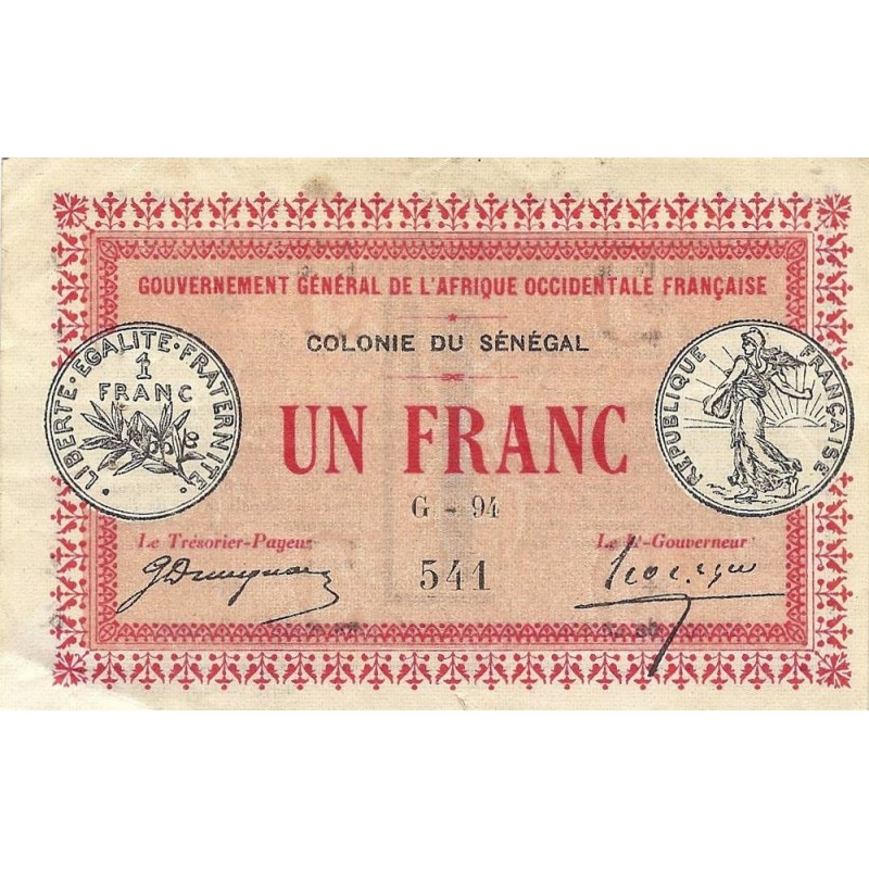 • Colonie du Sénégal - Pick 2b - 1 franc - Série G-94 - 11/02/1917 - Etat : TTB