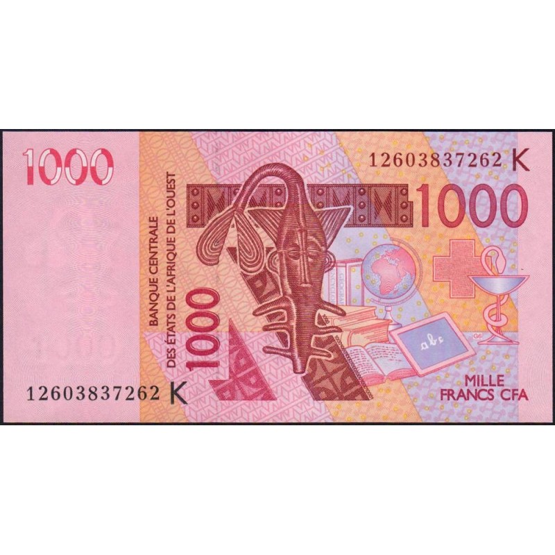 Avers : Logo de la BCEAO (poisson-scie stylisé), santé et éducation (illustrées par un caducée, une croix médicale, par des livres, une ardoise, un globe terrestre)