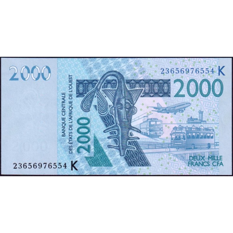 Avers : Logo de la BCEAO (poisson-scie stylisé), transport (train, avion, car)