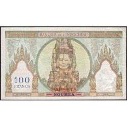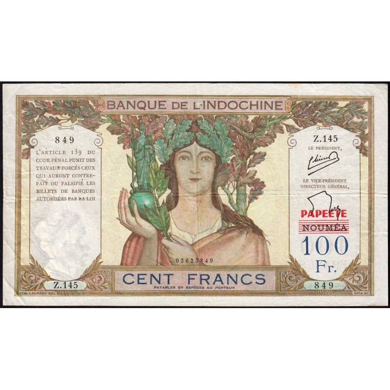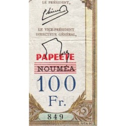 Papeete (en rouge à l'avers et au revers / Nouméa en noir à l'avers, en bleu-foncé au revers, le tout annulé par des traits rouges)