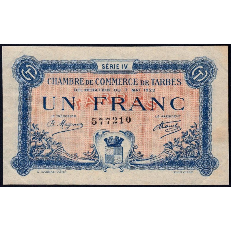 • Tarbes - Pirot 120-25 - 1 franc - Série IV - 07/05/1922 - Etat : TTB+